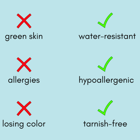 Our jewellery is 100% waterproof, so you never have to take it off! Wear it in the shower, at the gym, in the pool, or even at the beach – it won’t tarnish. ✨